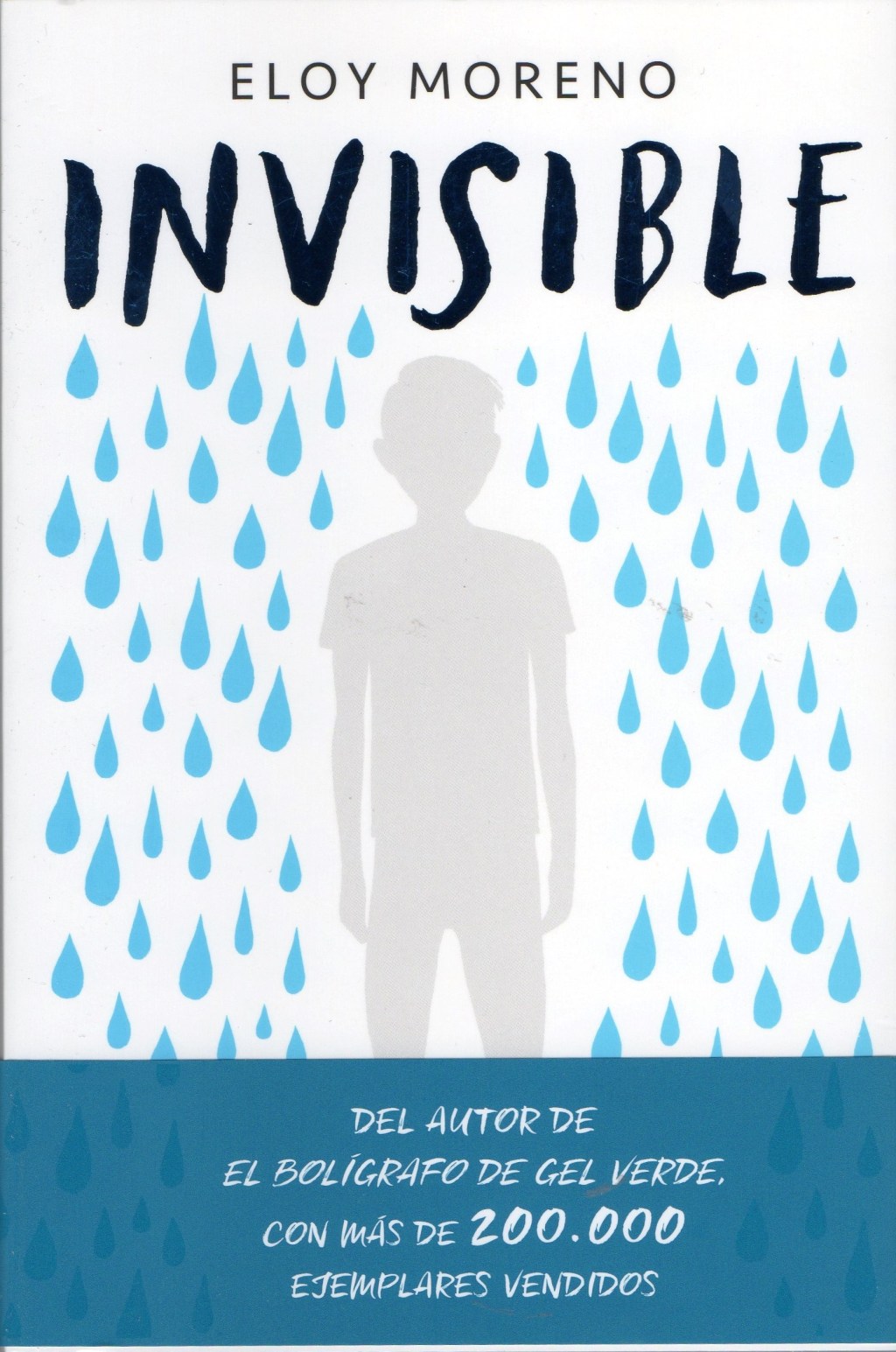 Invisible (Nube de tinta, 2018), de Eloy Moreno Olaria, es un libro tremendo. Su portada parece un dibujo infantil, hace pensar que se trata de un cuento sobre algo pueril y anodino. Pero no, la portada representa al protagonista, un chico de unos doce años que está hierático bajo la lluvia esperando que el tren que se acerca a él lo arrolle y lo mate. Sí, eso es lo que representa.